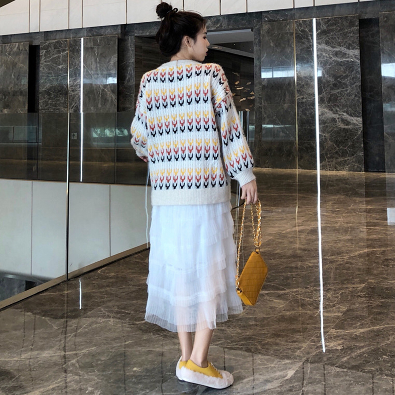 / chic慵懶風花色麻花毛衣外套女秋冬裝2018新款韓版寬松長袖針織衫