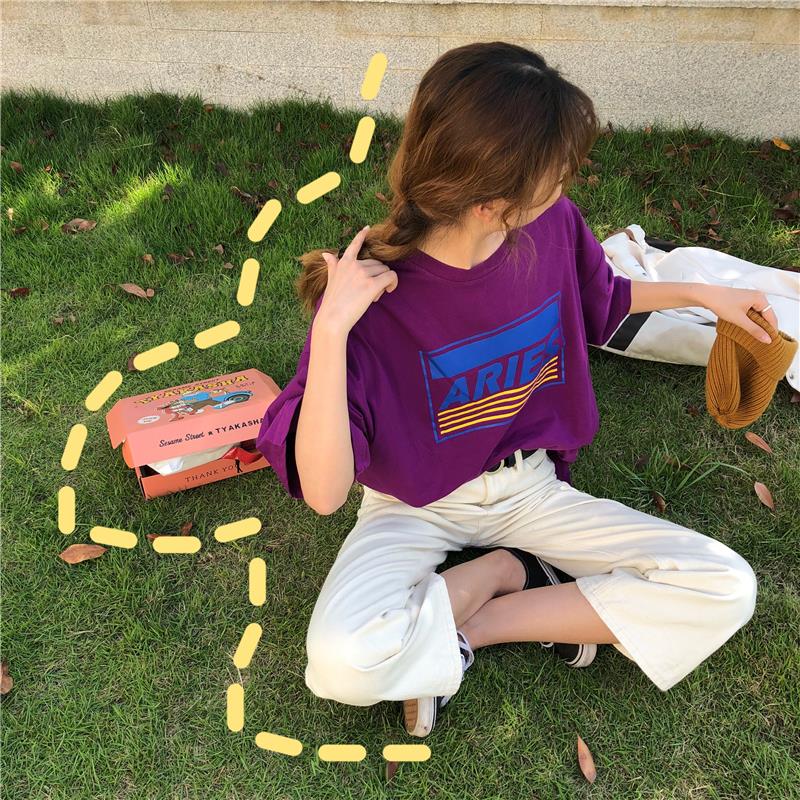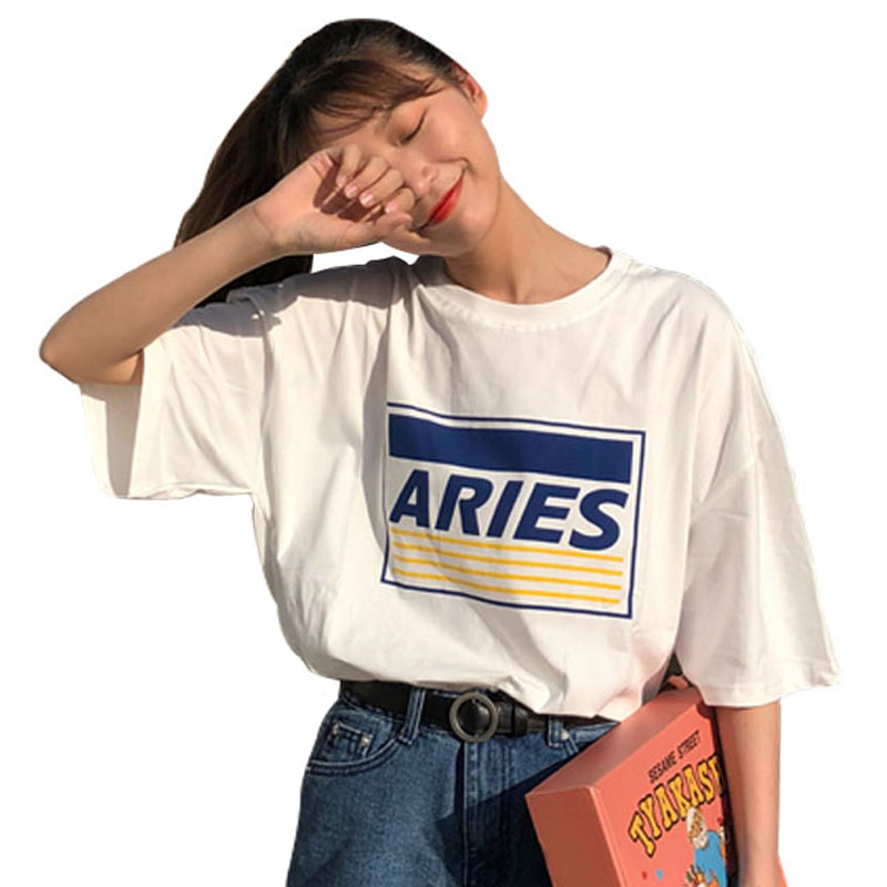 / 夏裝女裝韓版中長款原宿風寬松字母短袖T恤學生五分袖體恤上衣潮