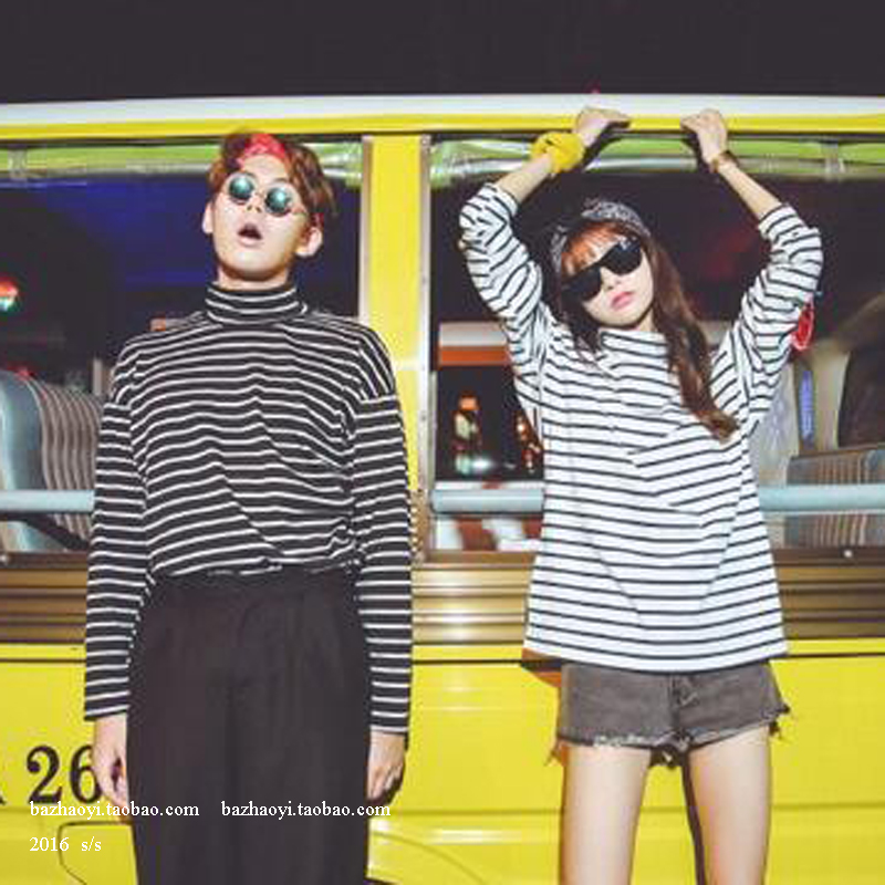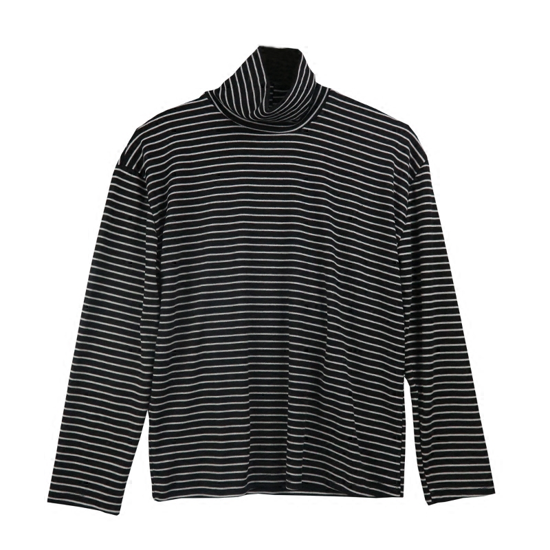 秋裝女2018新款韓版修身顯瘦條紋高領打底衫長袖T恤港風百搭上衣