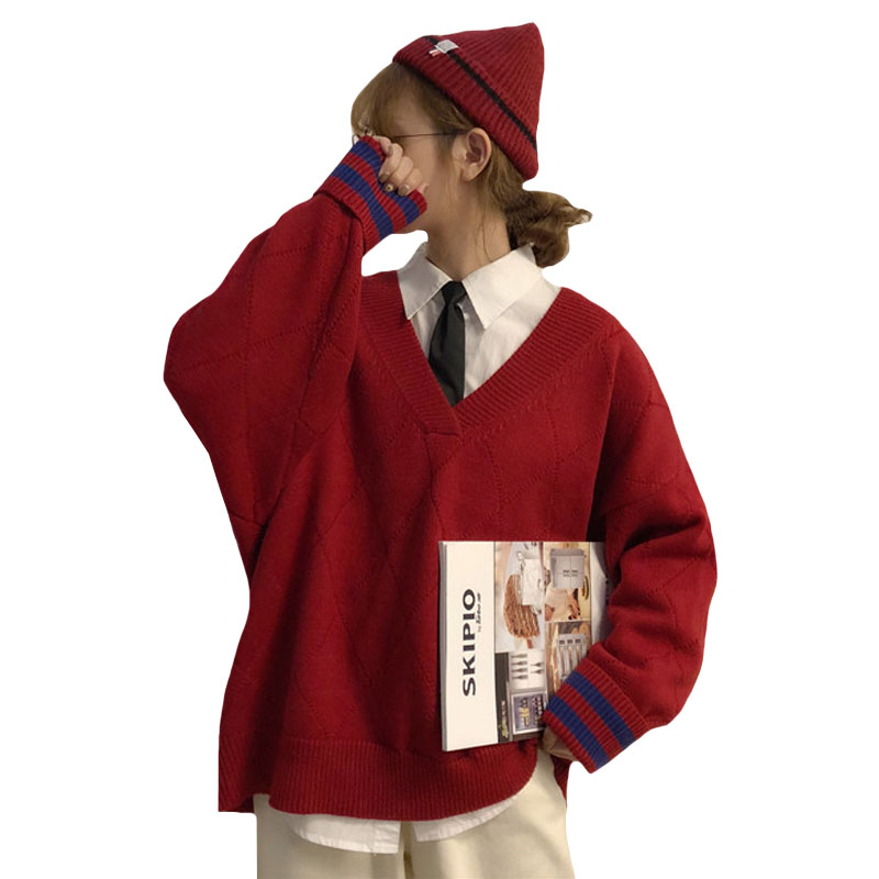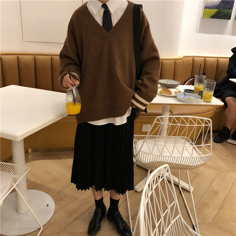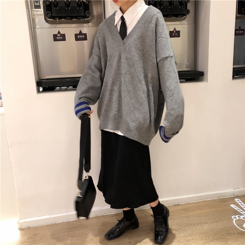可可里小姐~韓版寬松百搭減齡V領毛衣+百搭純色襯衫帶領帶