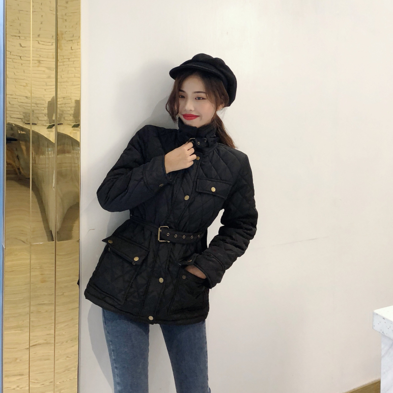 韓版時尚復古外套女冬季2018新款百搭顯高收腰夾克加厚棉衣女上衣