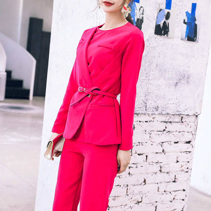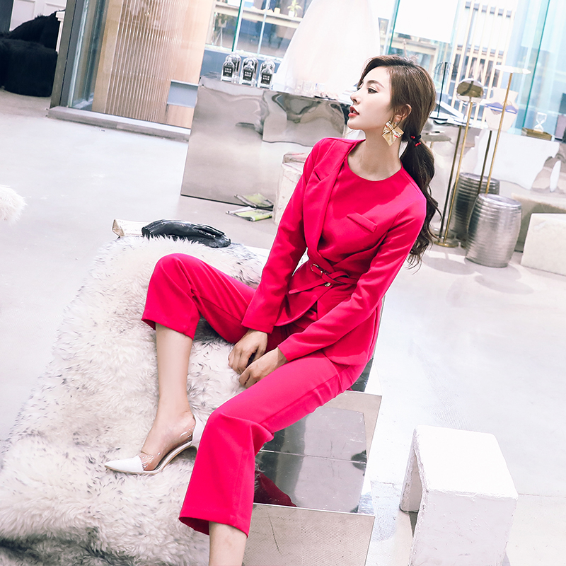 / 英倫風時尚女套裝早秋2018新款九分褲小西裝長袖收腰韓版兩件套