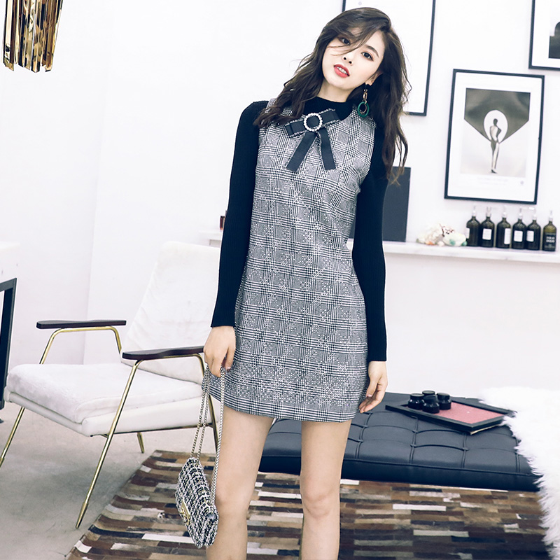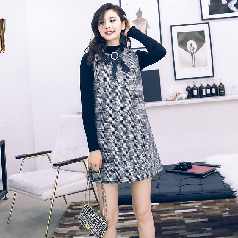 洋氣套裝秋冬兩件套針織衫打底連衣裙2018新款無袖毛衣馬甲背心裙