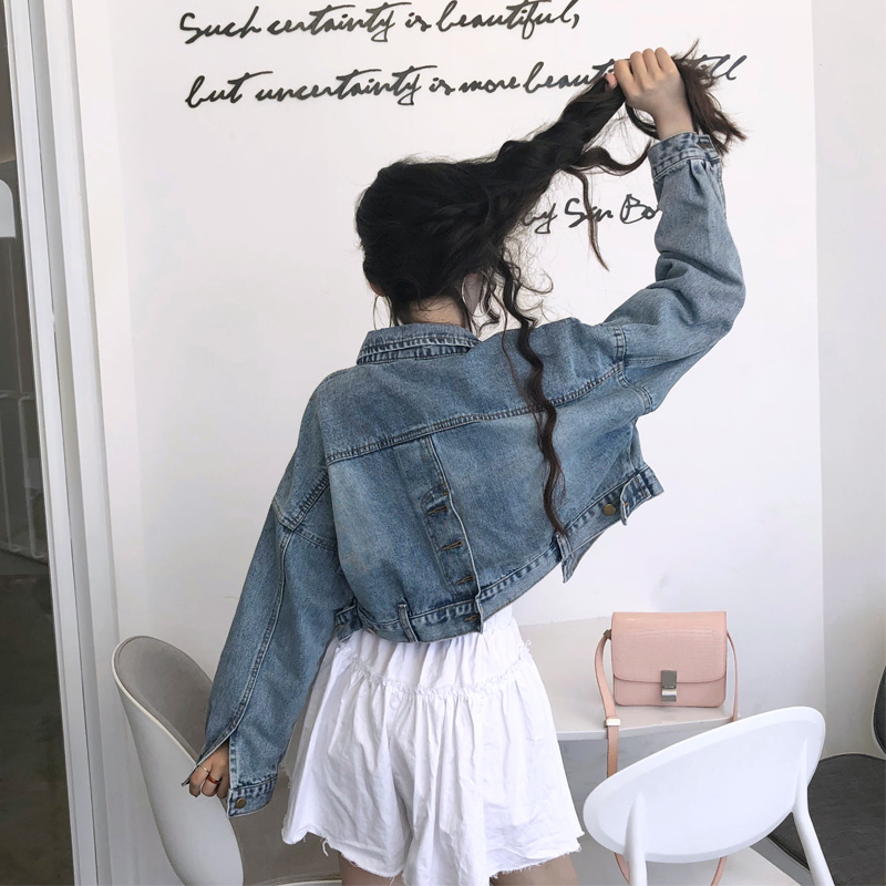 / 港味時尚復古秋裝女2018新款百搭長袖牛仔外套女修身顯瘦短款夾克