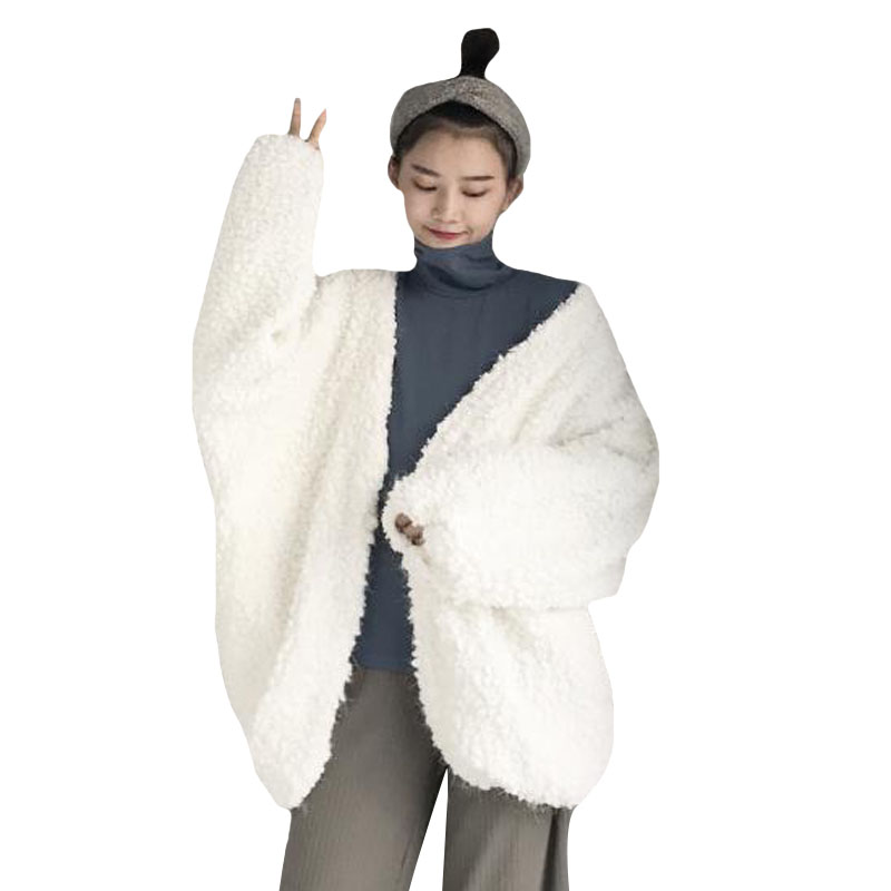 / 2018新款秋冬韓版中長款寬松百搭仿羊羔毛加厚保暖開衫上衣外套女