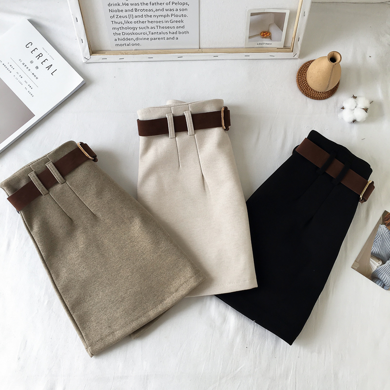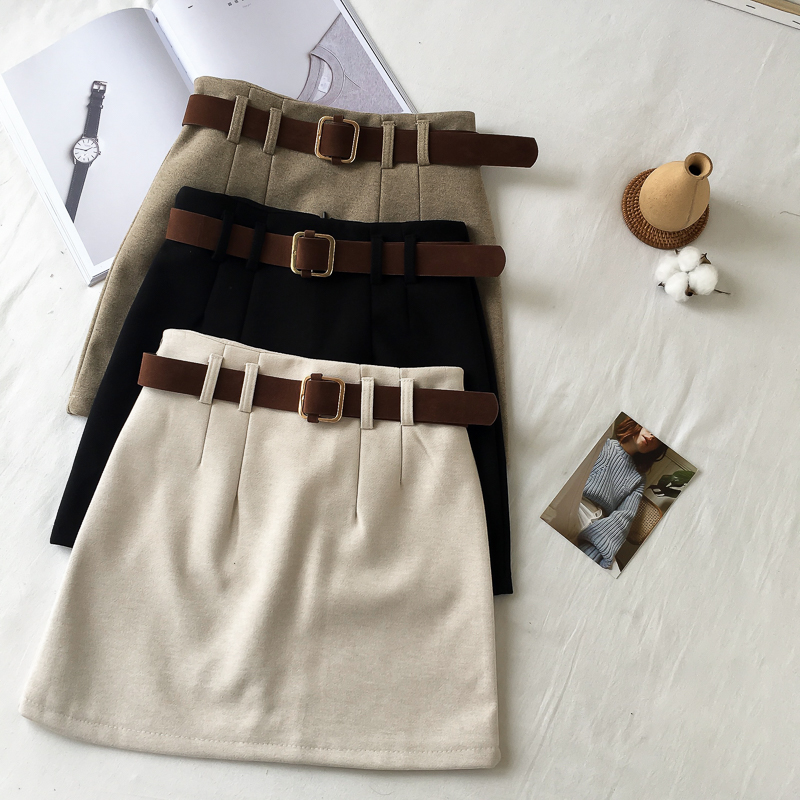 港味秋冬2018新款毛呢裙子半身裙女加厚短裙呢子裙a字裙子送皮帶