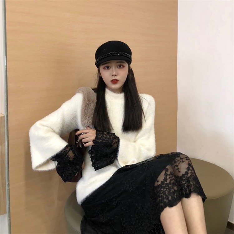 落肩長袖的設計,增加了一絲慵懶氣質,溫暖感更甚
