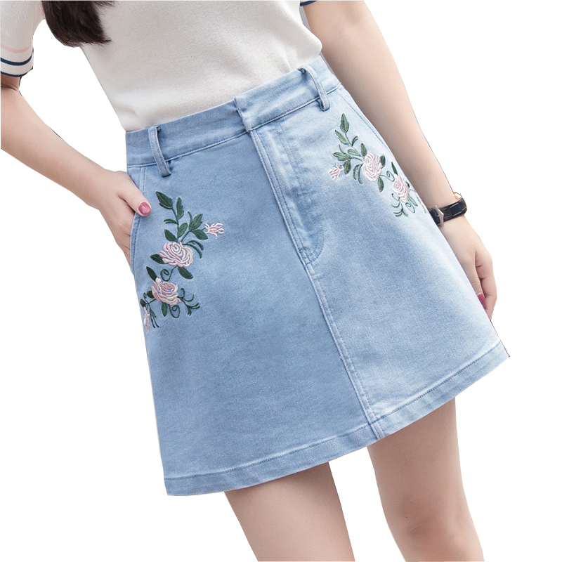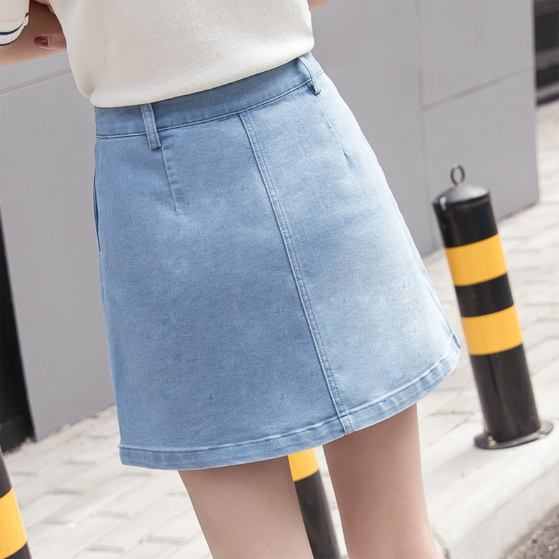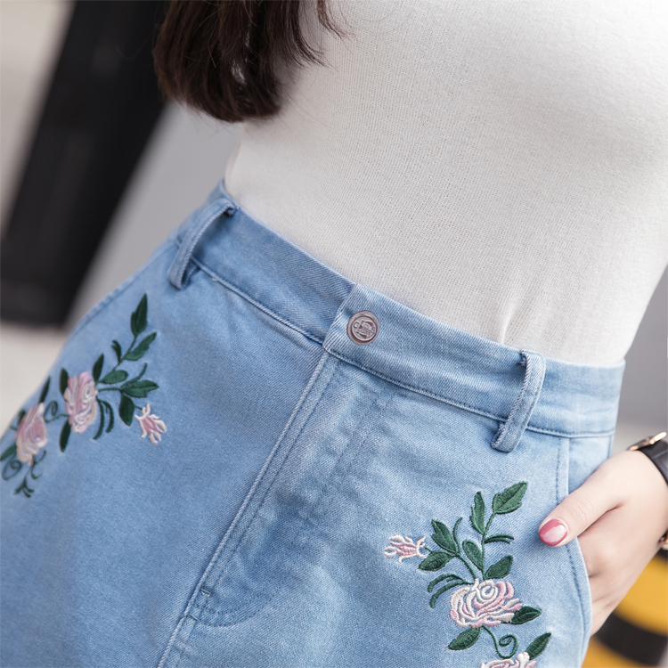 / 牛仔裙褲女夏高腰A字包臀牛仔半身裙女裙大碼裙子防走光刺繡半裙