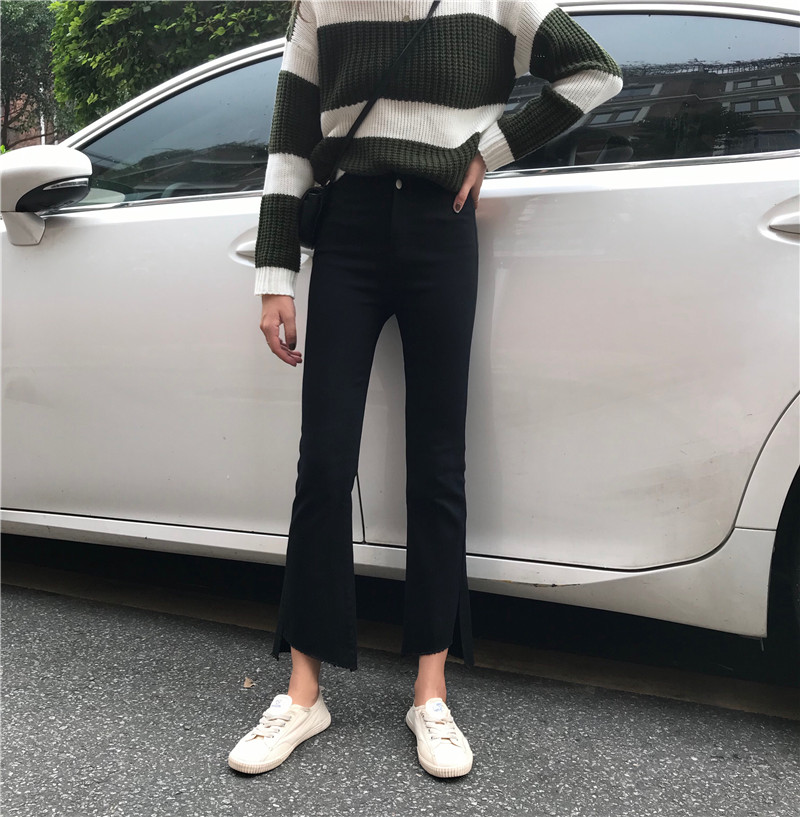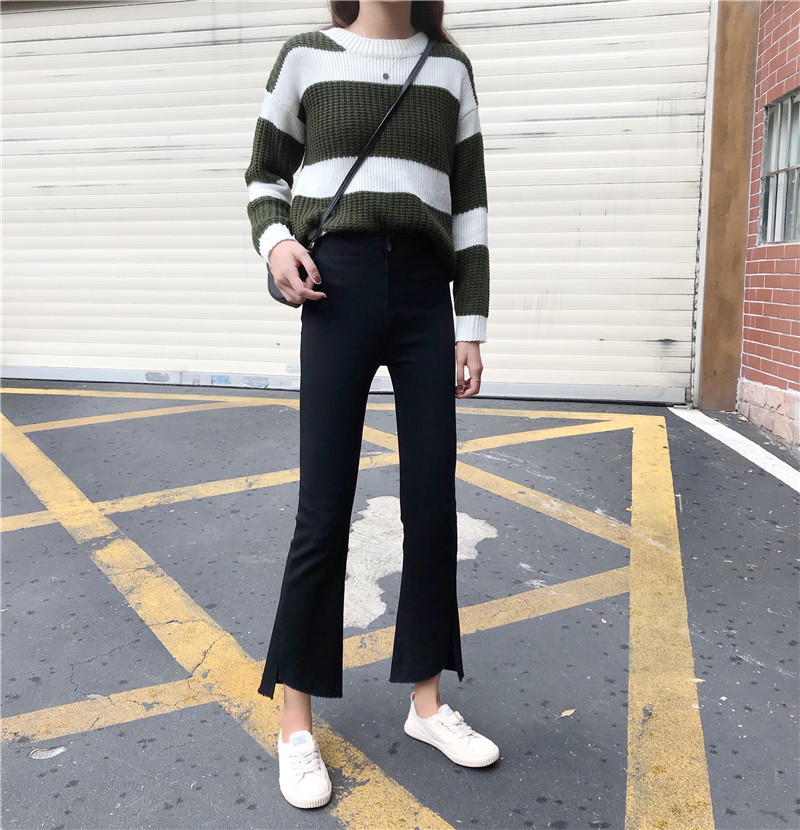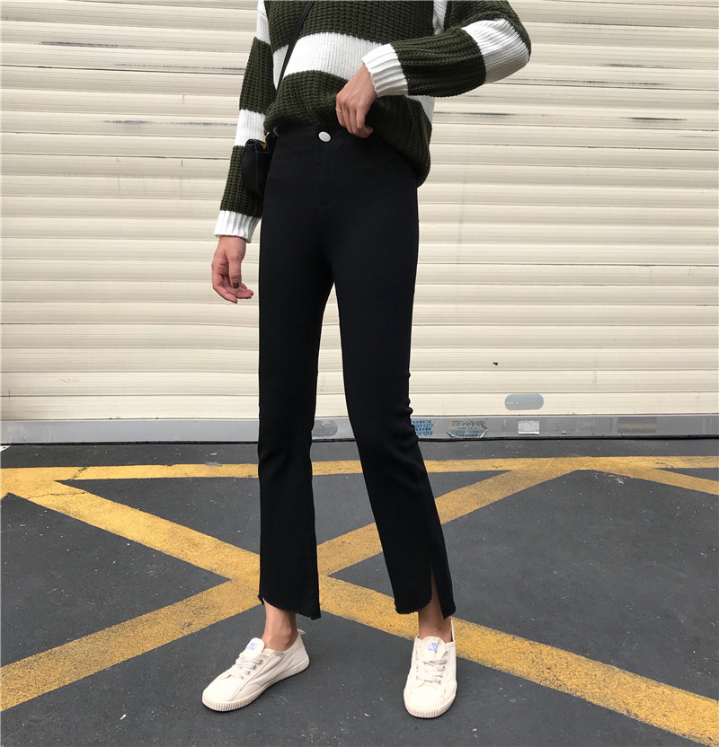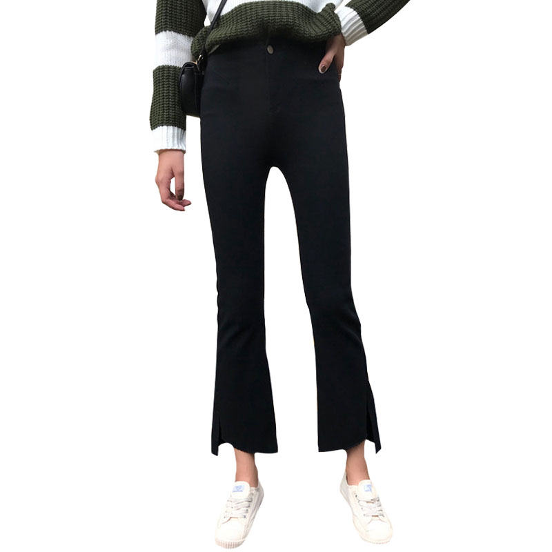 / 秋季韓版高腰顯瘦個性開叉褲腳喇叭褲休閑褲九分褲學生褲子女