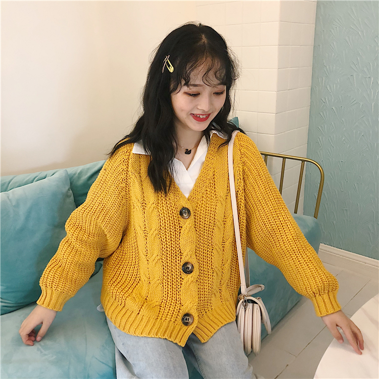 秋冬女裝韓版BF風寬松慵懶風短款鏤空網紅長袖毛衣針織衫開衫外套