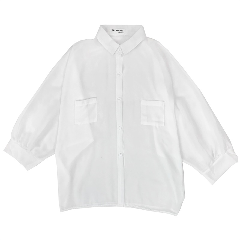 / 新款女裝寬松顯瘦百搭外搭學生蝙蝠袖雪紡防曬開衫薄款襯衣空調衫