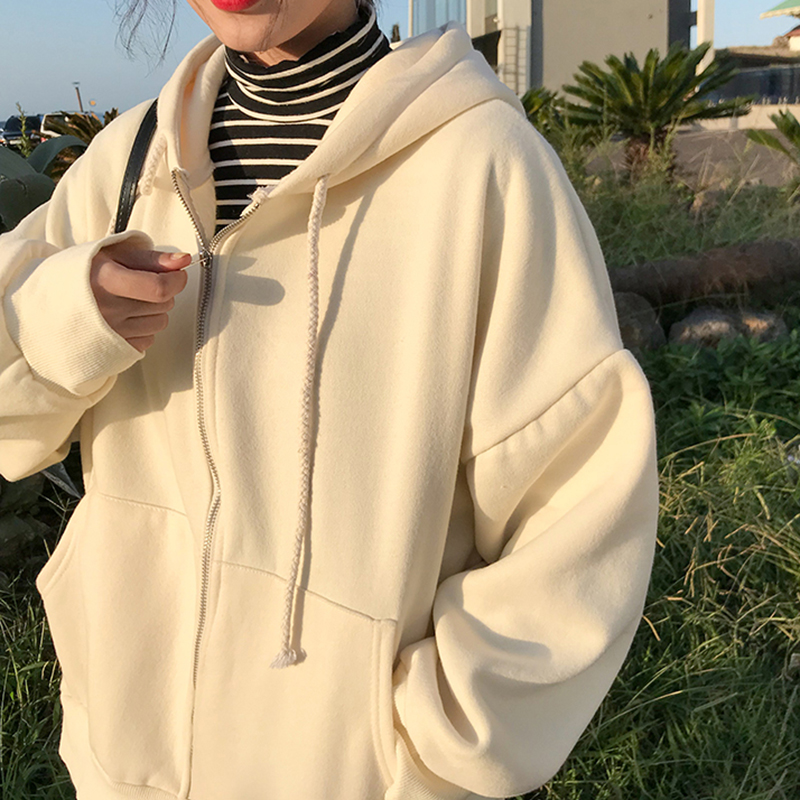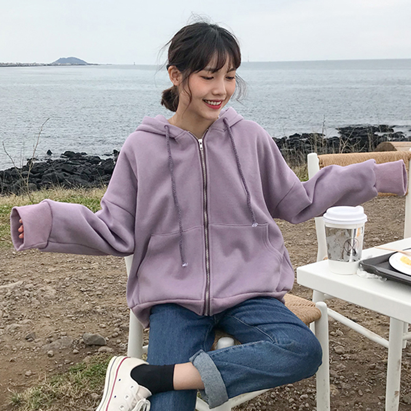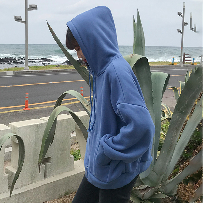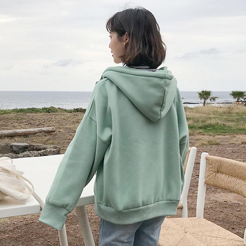 秋冬女裝2018新款韓版學生純色加絨衛衣時尚休閑外套寬松開衫上衣