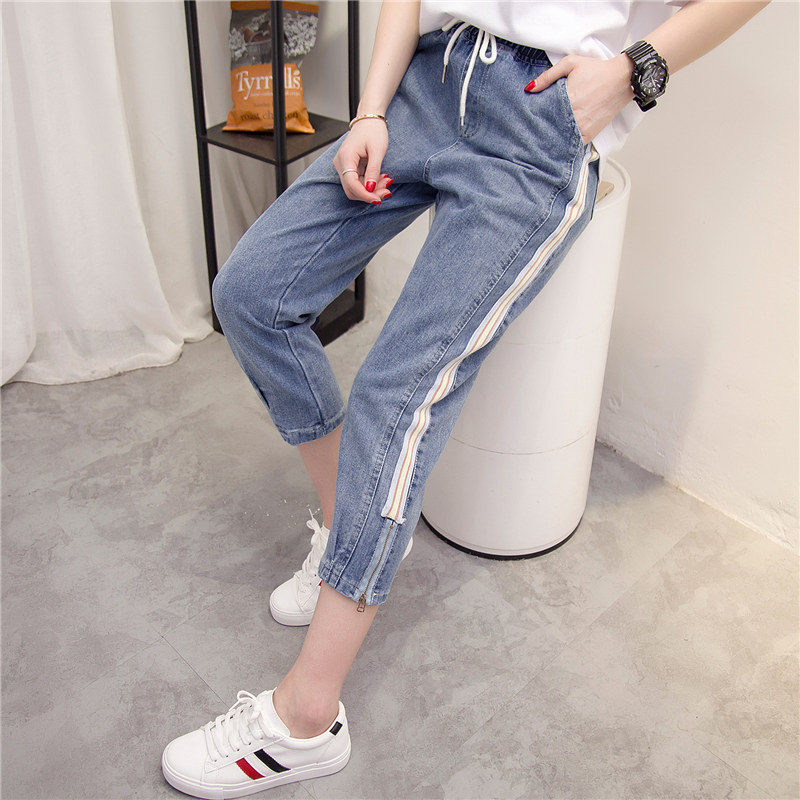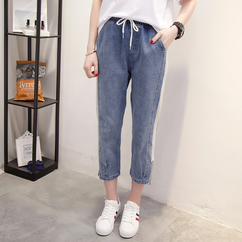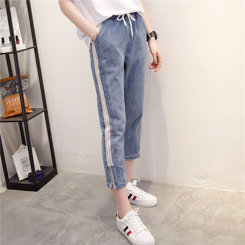 / 牛仔褲女春夏季新款休閑褲顯瘦系帶小腳褲子女夏寬松九分褲潮