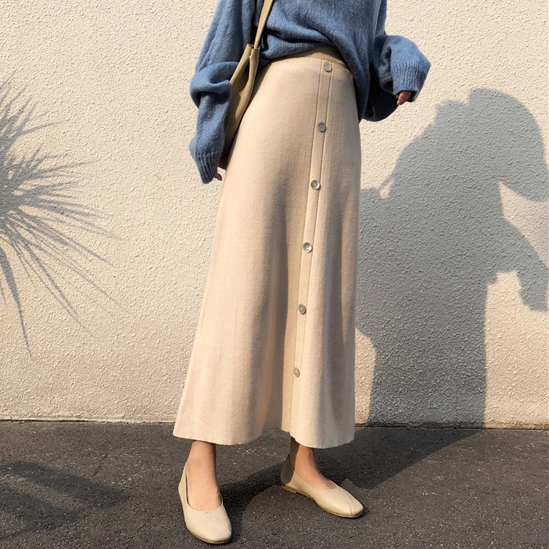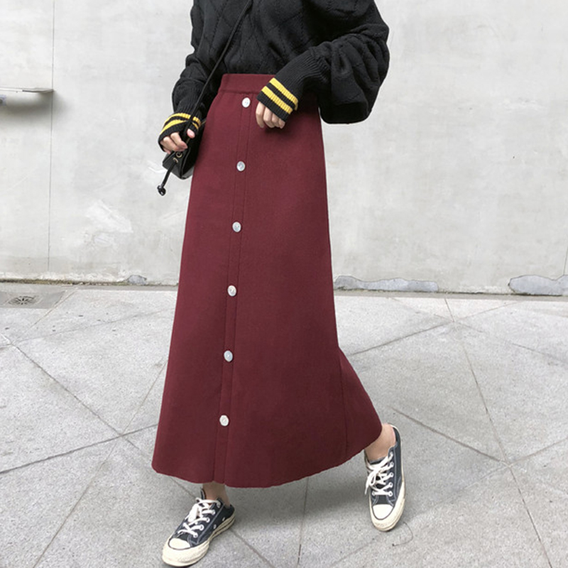 / 高腰顯瘦針織半身裙子女秋冬裝新款韓版chic學生復古黑色A字長裙