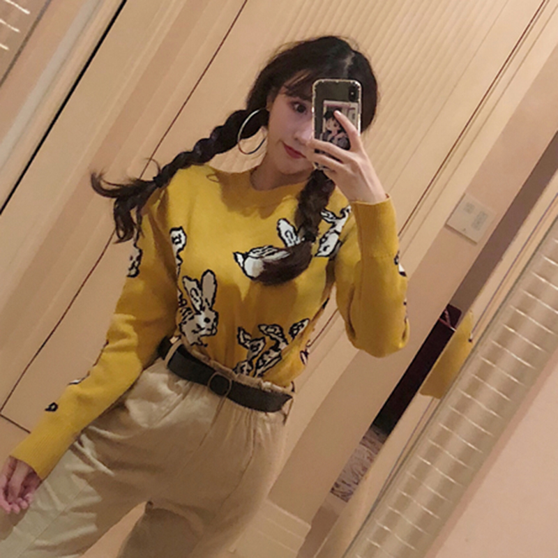 / 洋氣套裝女秋冬新款寬松卡通套頭針織衫毛衣外套寬松高腰休閑褲子