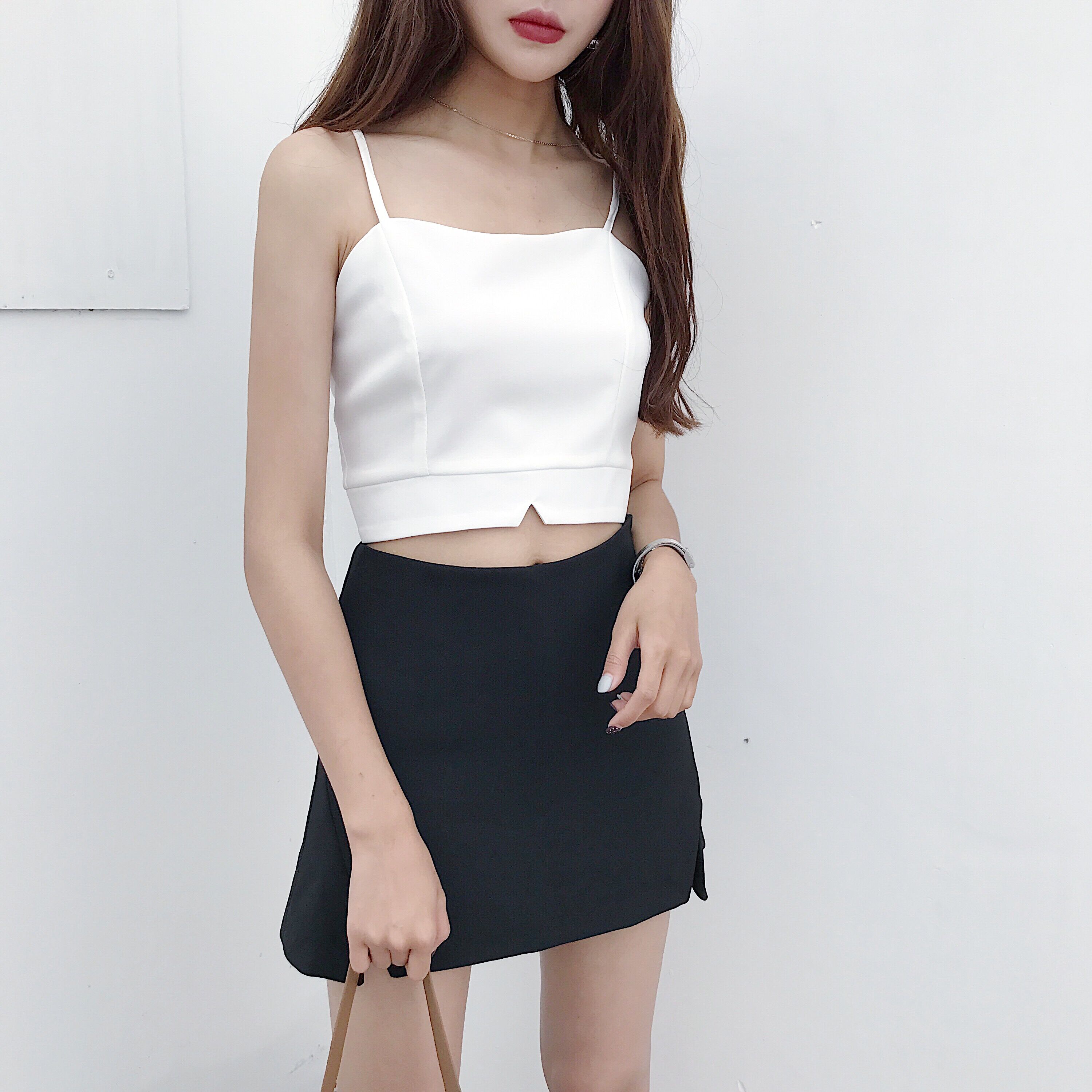 2018夏季新款韓版簡約百搭針織吊帶背心雙肩帶修身純色打底衫女