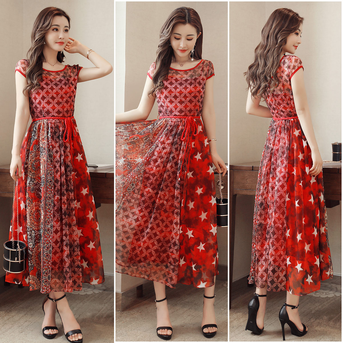 印花雪紡連衣裙女長裙2017夏季新款氣質韓版顯瘦夏天無袖長款裙子