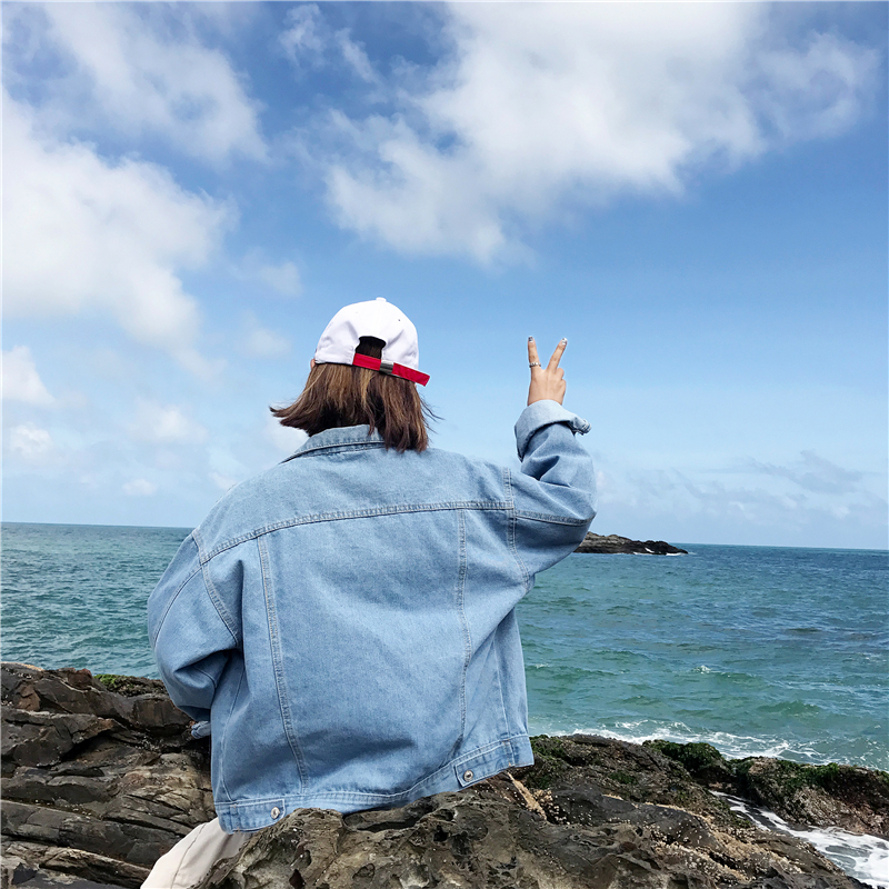 / 秋裝女裝新款韓版寬松百搭淺藍色牛仔衣學生休閑短款夾克外套工裝