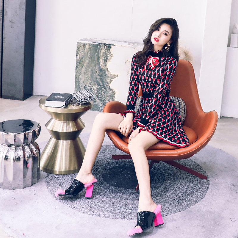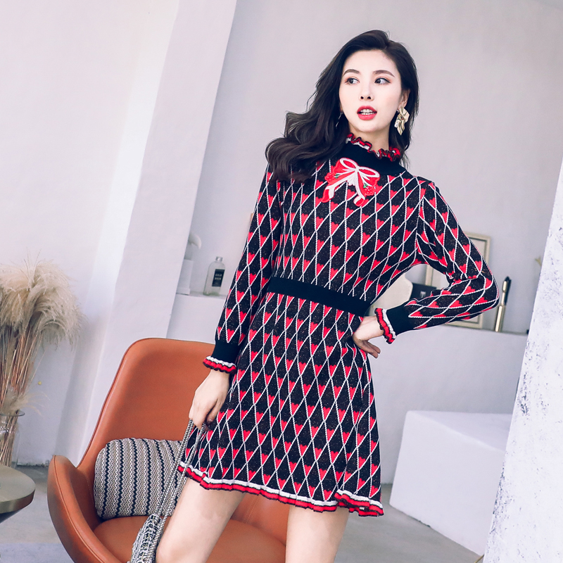 / 網紅時尚繡花針織拼接連衣裙秋冬季女裝2018新款荷葉邊甜美公主裙