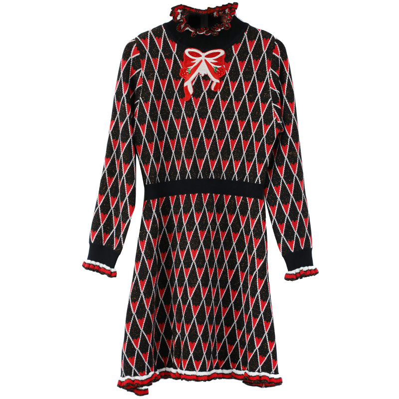 網紅時尚繡花針織拼接連衣裙秋冬季女裝2018新款荷葉邊甜美公主裙