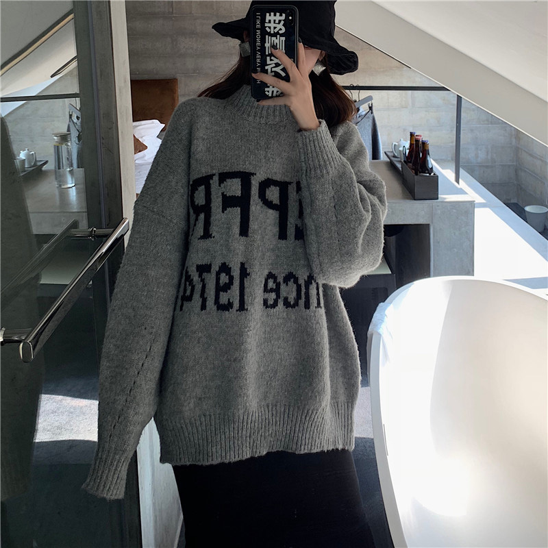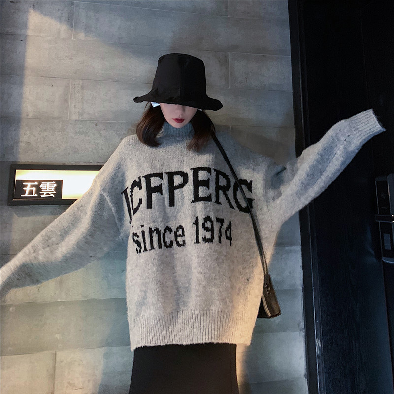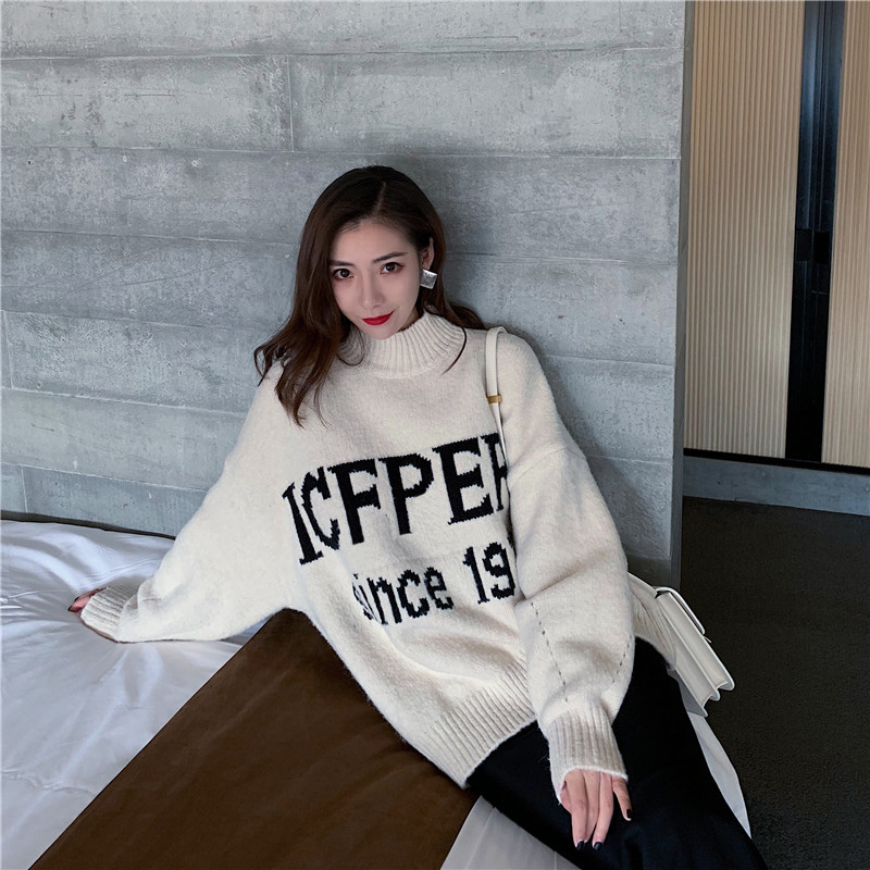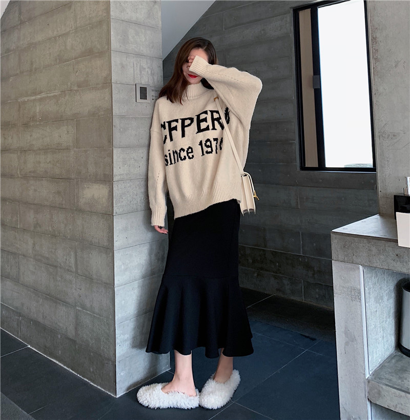 / 寬松加厚半高領字母毛衣時尚套裝百搭高腰魚尾半身裙chic兩件套女
