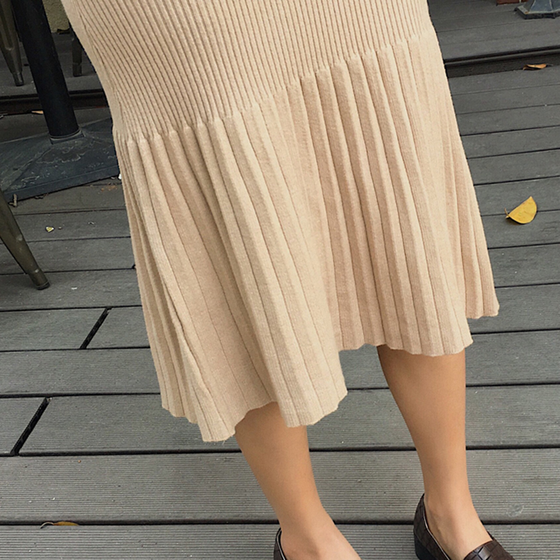 慵懶復古風針織半身裙秋裝女2018新款高腰百褶魚尾裙中長A字裙子