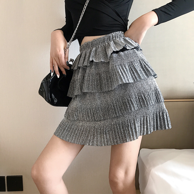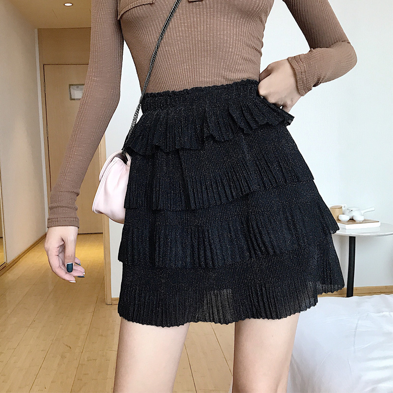 / 裙子女秋季新款韓版百搭高腰chic時尚閃閃亮絲半身裙蛋糕裙短裙潮