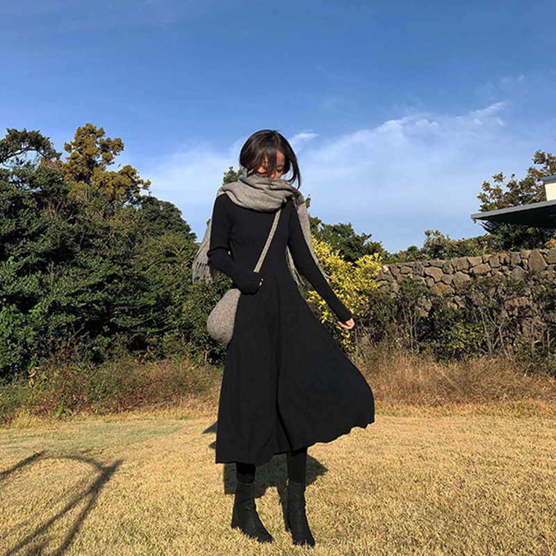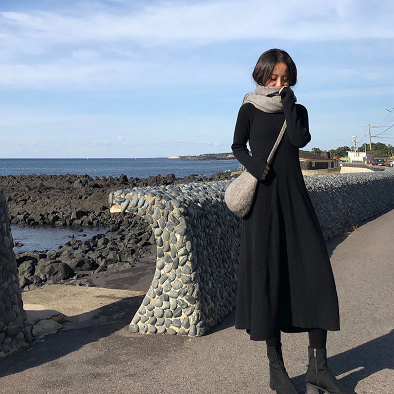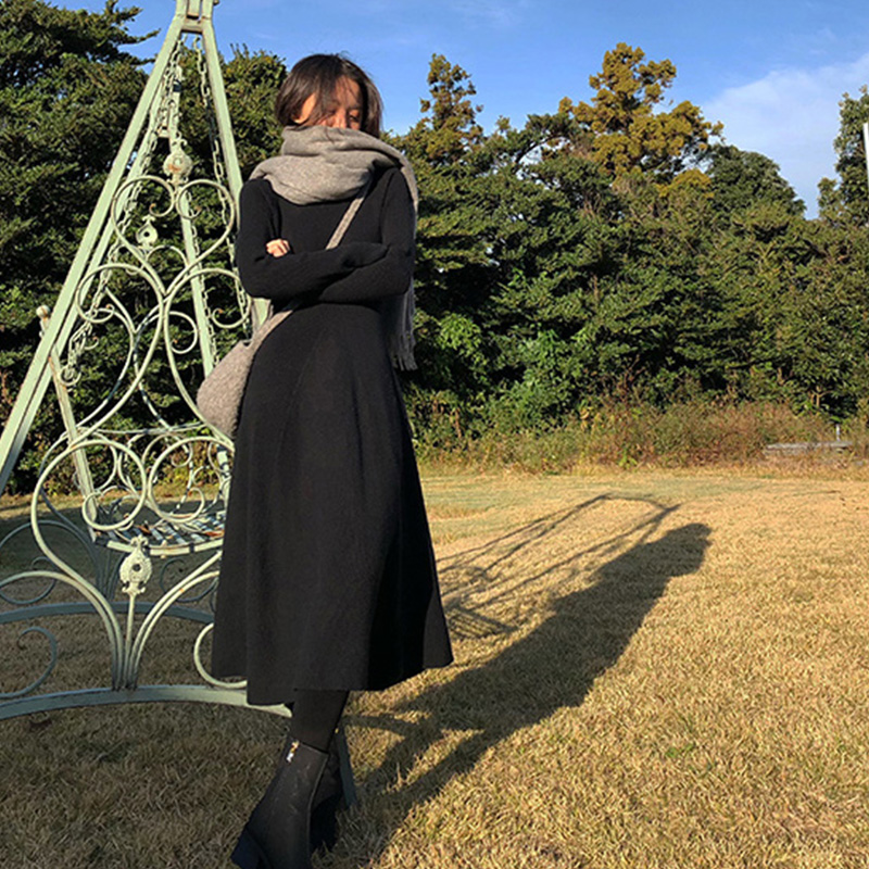 / 冬秋裝女2018新款氣質長款毛衣桔梗裙復古法式高冷范女裝連衣裙子