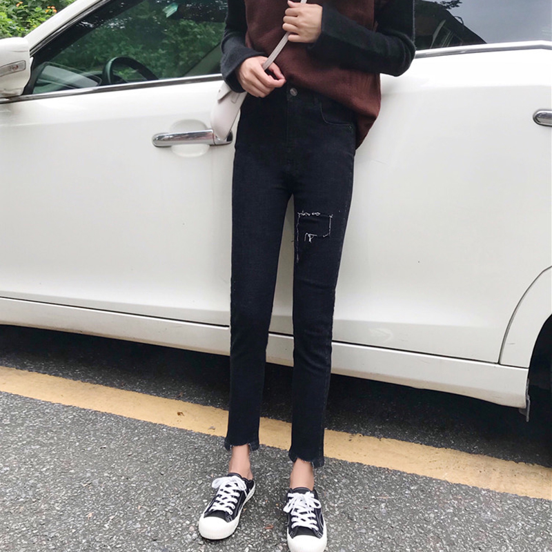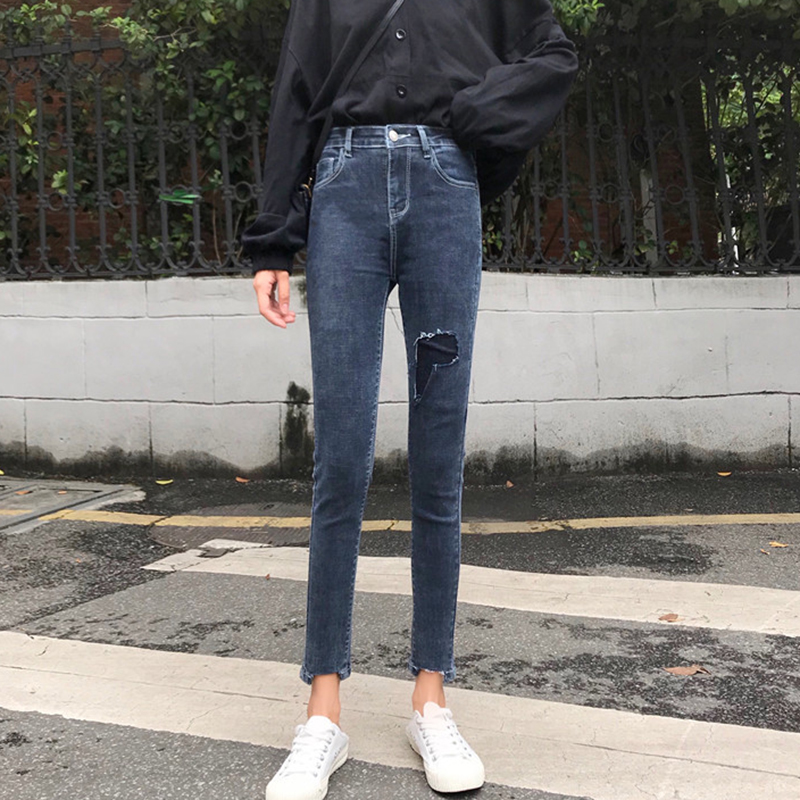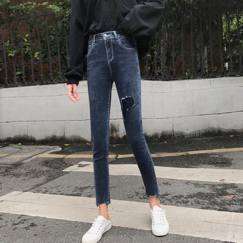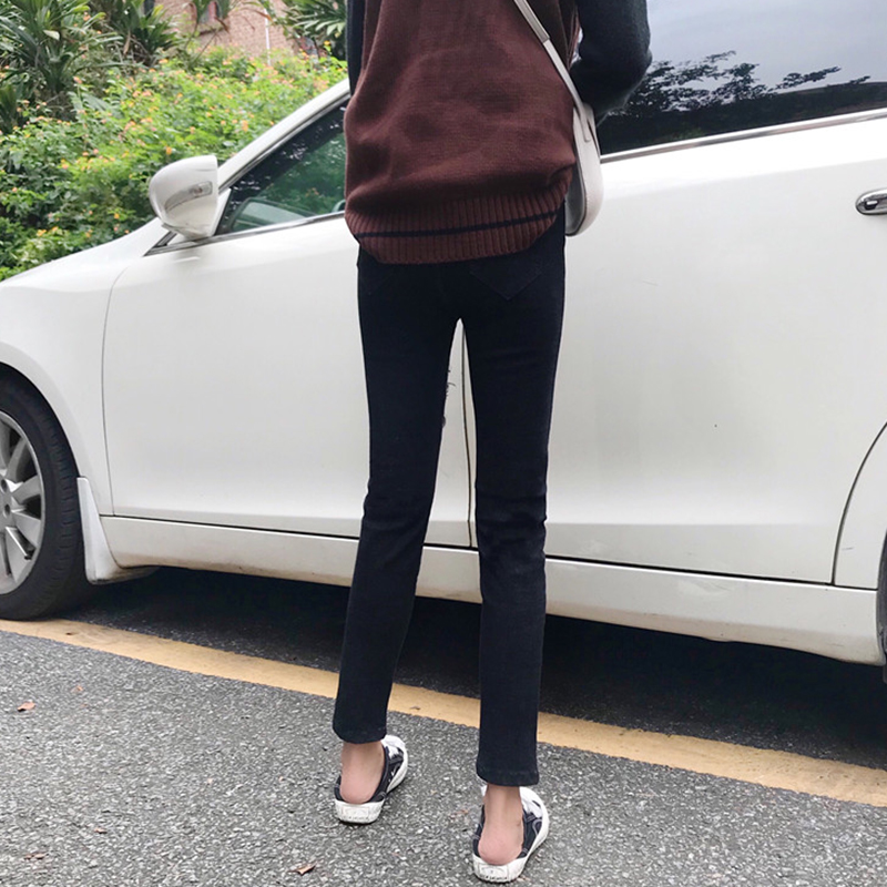 / 破洞牛仔褲秋冬2018新款韓版女裝高腰修身小腳褲彈力顯瘦鉛筆褲子