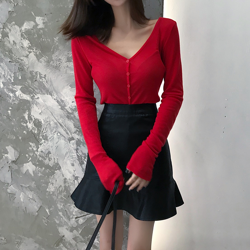 紅色打底衫|黑色打底衫|卡其色皮裙|黑色皮裙