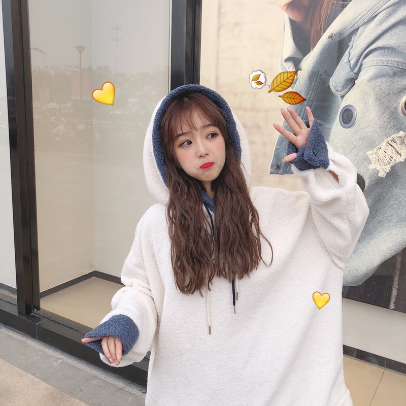 / 秋冬女裝韓版原宿風寬松慵懶風拼色加厚連帽套頭超火衛衣上衣外套