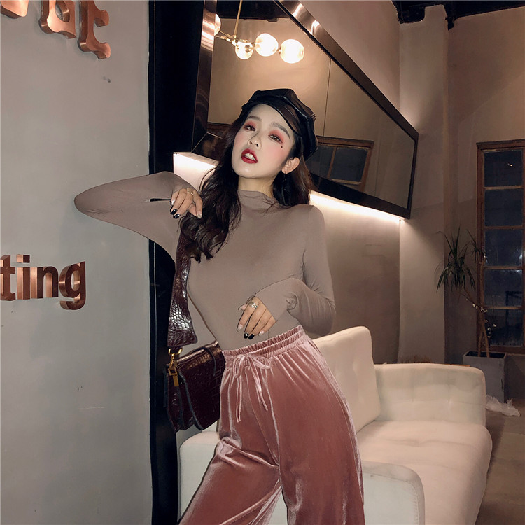 初秋新款女上衣韓版時尚chic基礎款百搭顯瘦高領純色打底衫t恤女