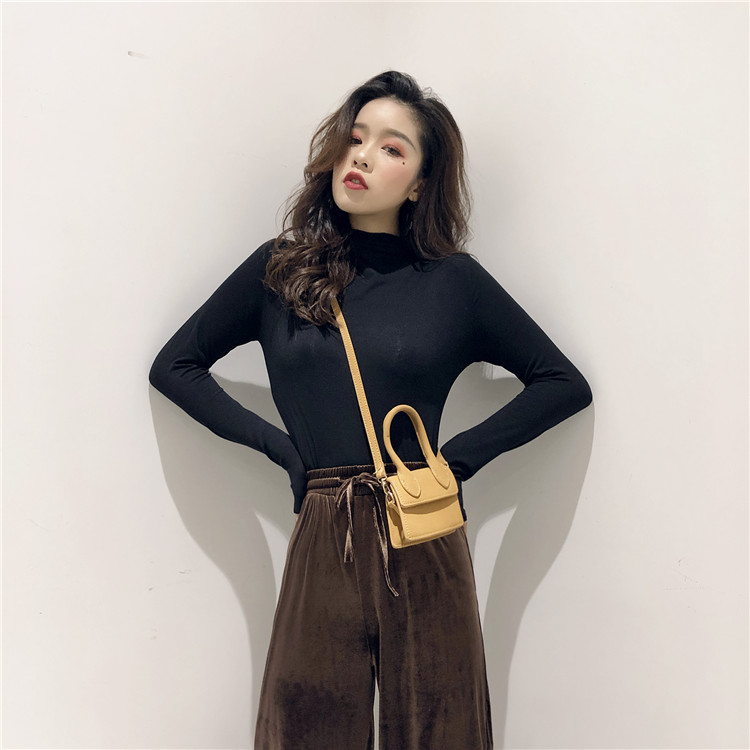 / 韓版2018早秋新款時尚半高領七色貼身顯瘦百搭純色打底衫T恤女裝