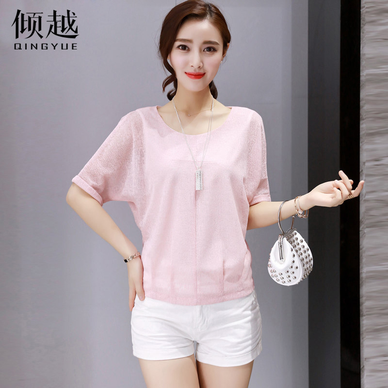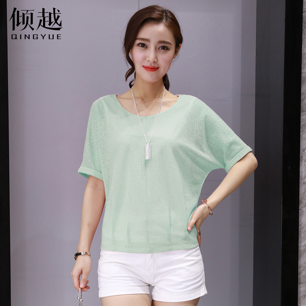 2017新款韓版圓領蝙蝠袖雪紡衫短袖女夏季純色大碼寬松顯瘦上衣女
