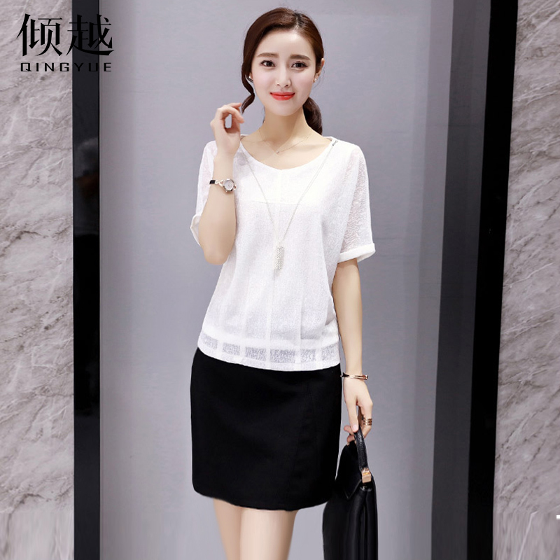 / 2017新款韓版圓領蝙蝠袖雪紡衫短袖女夏季純色大碼寬松顯瘦上衣女