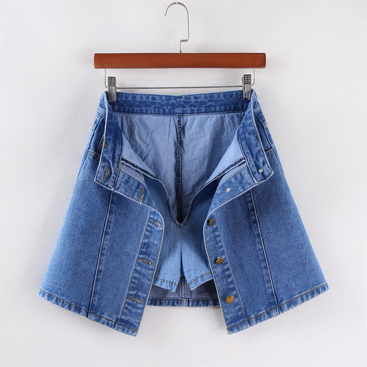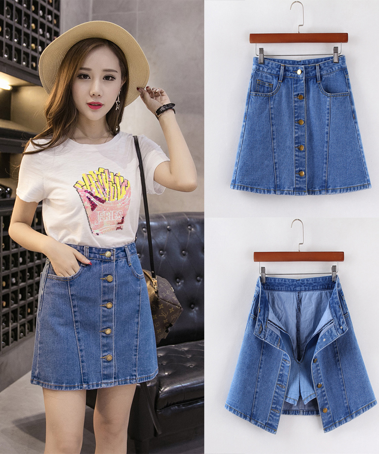 / 韓版高腰牛仔裙半身裙女單排扣A字裙包臀短裙防走光褲裙夏季半裙