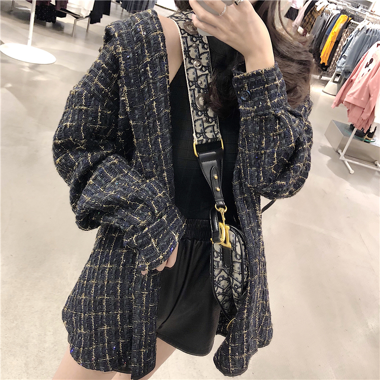 在這里重點強調一下格子的設計,以亮金色紗線作為邊界