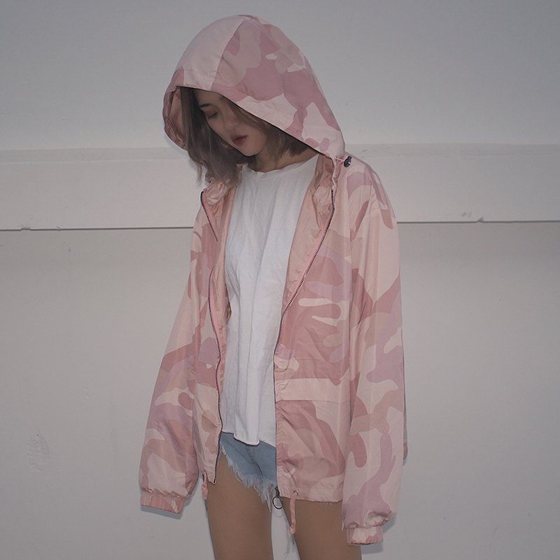 / 秋裝女2018新款時尚韓版寬松顯瘦氣質百搭迷彩長袖連帽風衣外套潮