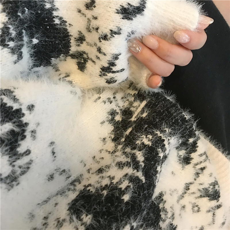 / 慵懶風寬松撞色毛絨絨外套女秋冬裝2018新款韓版網紅套頭針織毛衣