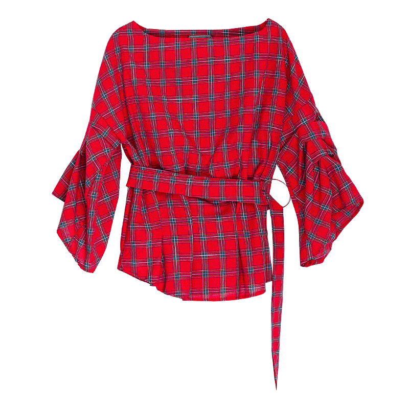 百搭的紅色格子,搭配不同色系的衣物都相當和諧好看