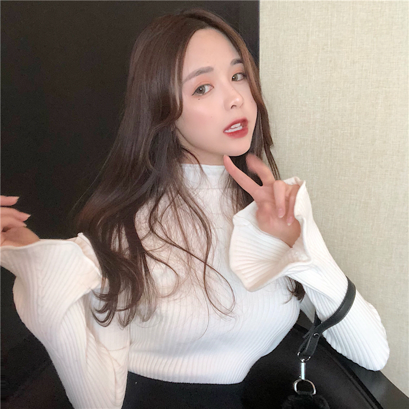 / 韓風時尚多色百搭喇叭袖加厚毛衣女秋冬2018新款打底針織衫上衣潮