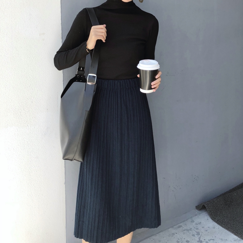 韓版時尚秋季半身長裙套裝新款女裝復古百搭加厚舒適A字半身裙潮