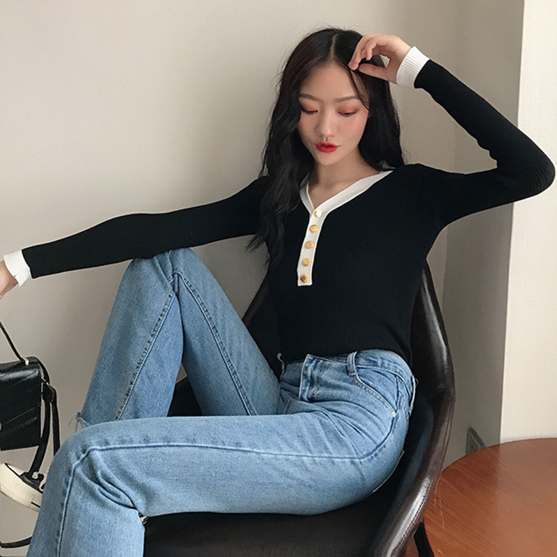 / 氣質修身針織衫秋裝女2018新款港味時尚黑色短上衣長袖簡約打底衫