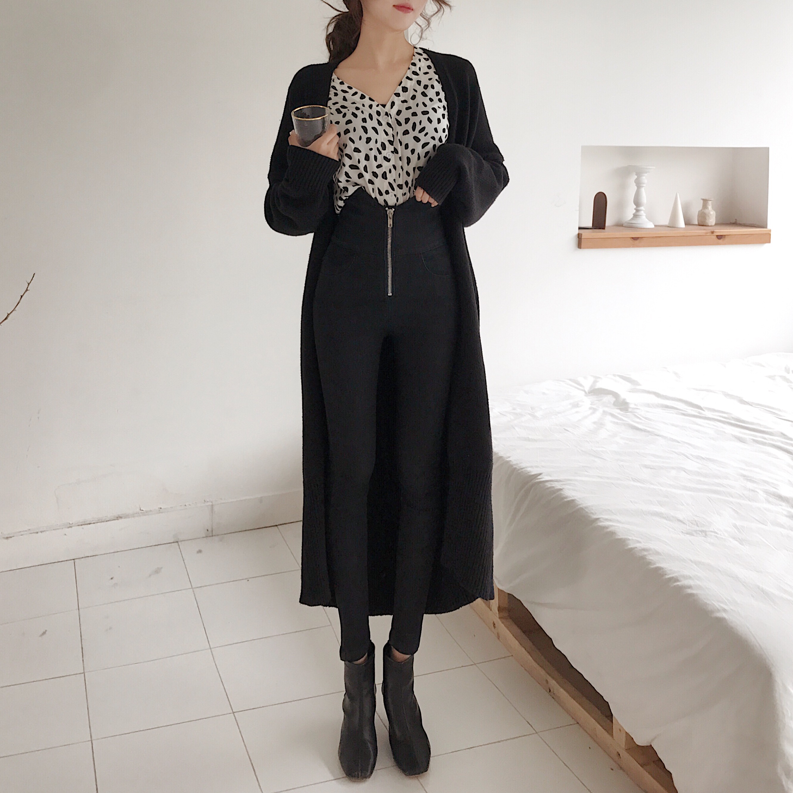 / 韓國港味復古chic風顯瘦高腰拉鏈打底緊身小腳鉛筆褲彈力牛仔褲女