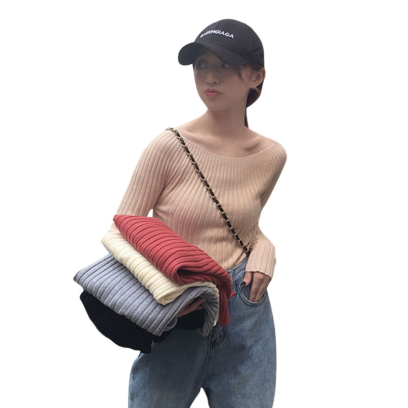 / 秋冬韓版修身顯瘦純色一字領針織衫學生網紅套頭打底衫毛衣上衣女