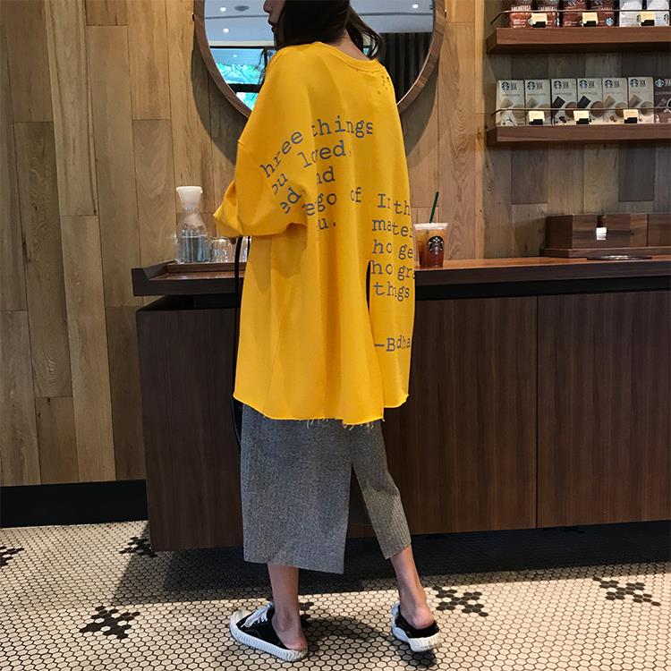 / 韓版時尚休閑套裝秋季個性字母卡通開叉衛衣+半身裙長裙兩件套女