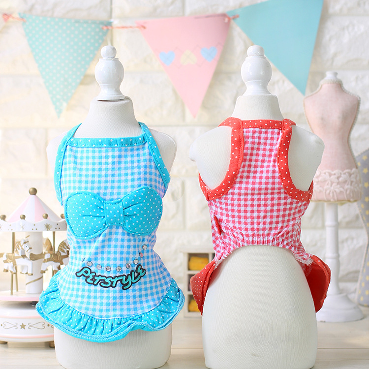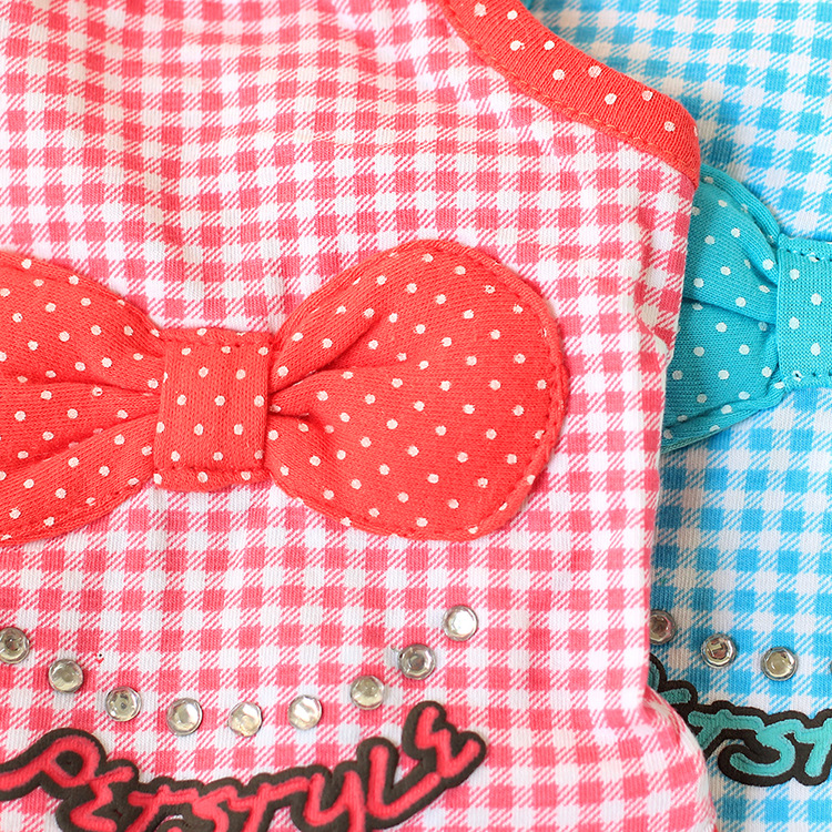 田園小清新の格子亮鉆吊帶裙~寵物連衣裙 狗狗春夏裝 泰迪裙子