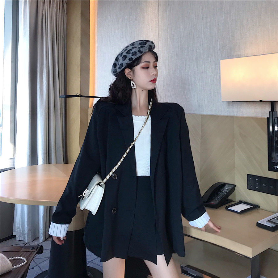 / 網紅時尚秋裝女2018新款套裝韓版小西裝+寬松chic氣質短裙兩件套