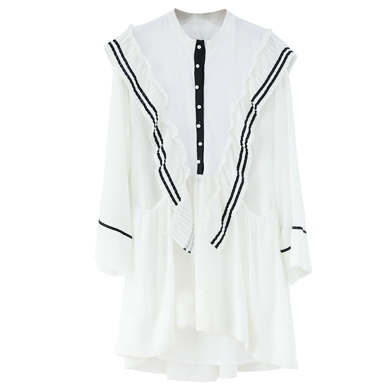 森系長袖娃娃裙寬松白色冷淡風連衣裙女夏2018新款學生a字短裙子