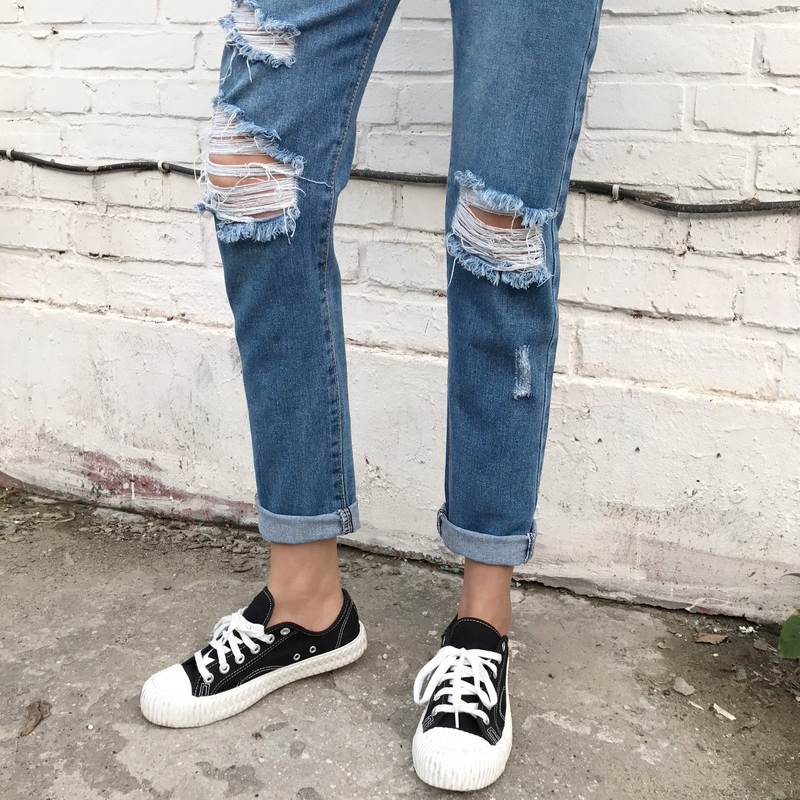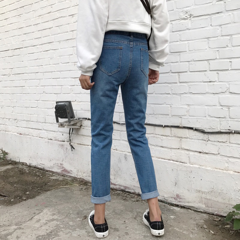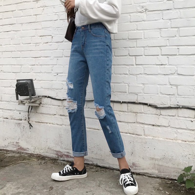 / 怪味少女褲秋冬裝2018新款韓版個性磨破洞直筒褲高腰顯瘦牛仔長褲